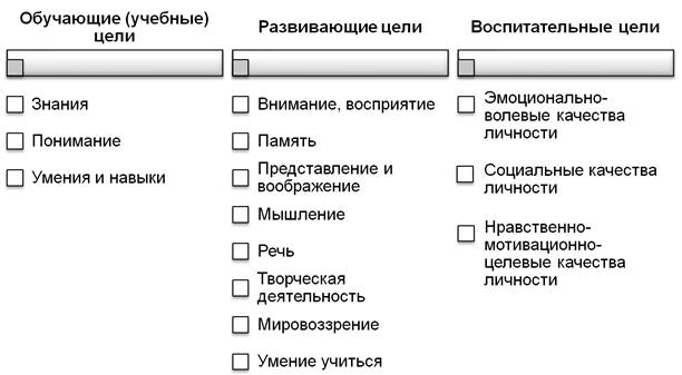 на учебные, развивающие и воспитательные. При конкретизации целей