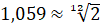 частот двух последующих нот для каждой ноты. Заметим, что это отношение
