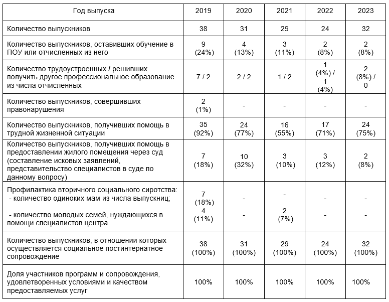 Результативность работы характеризуется данными, приведенными в таблице 1. Таблица 1 Аналитические данные по реализации задач социально-педагогической и психолого-педагогической работы по сопровождению выпускников (по годам обучения)
