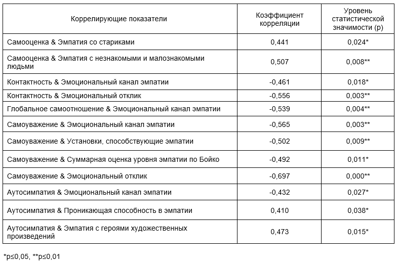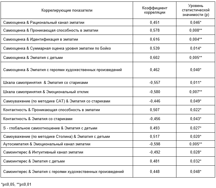 Таблица 3 Взаимосвязь самооценки и показателей самоотношения с эмпатией у магистрантов иных профилей (корреляция Спирмена)