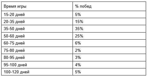 При анализе статистических данных процента побед в игре (Таблица 1), можно сделать следующие выводы: