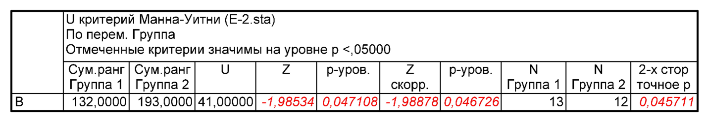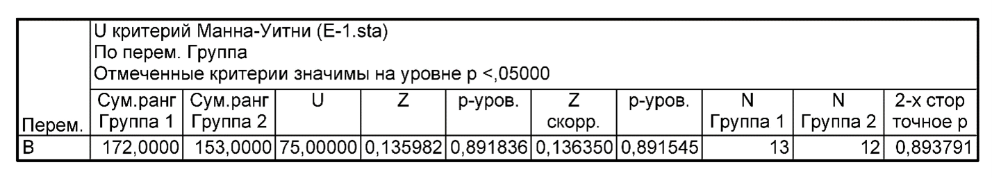 Для проверки статистической значимости результатов на контрольном этапе педагогического эксперимента также использовался критерий Манна-Уитни. Результаты которого приведены на Рисунке 2.