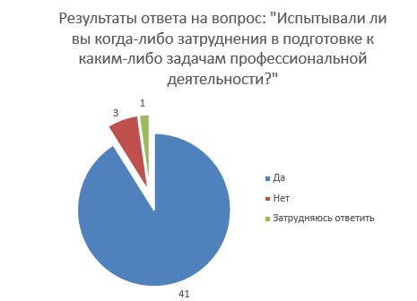 Для получения информации по первой позиции, обучающимся было предложено ответить на вопрос, испытывали ли они затруднения в процессе подготовки к различным задачам педагогической деятельности. Результаты ответов представлены на Рисунке 1.