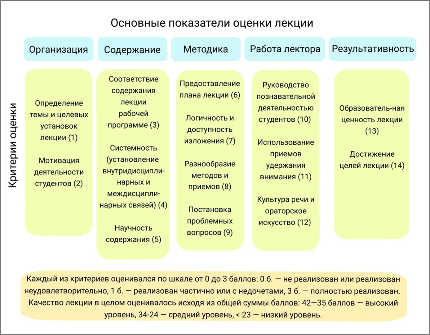 Рис. 1. Показатели и критерии оценки качества лекции методистом