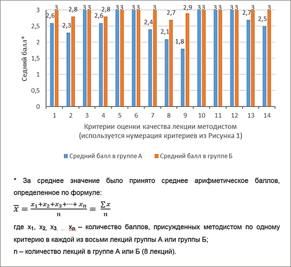 Рис. 2. Результаты оценки методистом качества лекций в группах А и Б