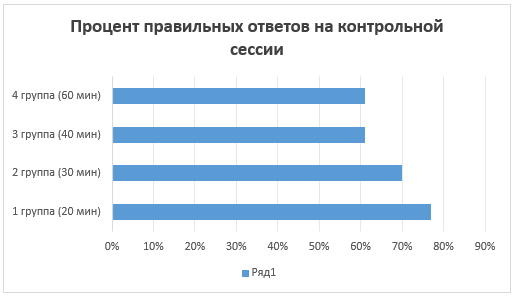 группа с первичной сессией в 30 минут (70% правильных ответов).