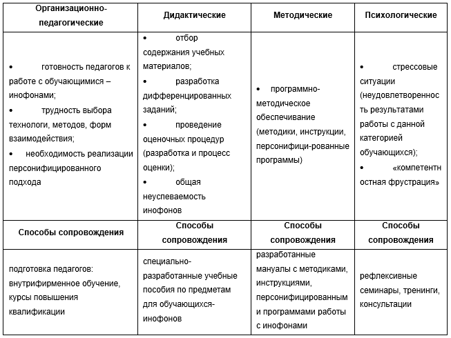 Abstract Key words: professional deficits, teachers, non-native learners (inophones), ways of supporting, SOLO taxonomy, differentiated tasks. ---------------- Миграционные процессы, происходящие в нашей стране, оказывают влияние на многие сферы деятельности, в том числе и на развитие образования. В современных образовательных учреждениях (детских садах, школах, вузах) появляется все больше инофонов, детей и взрослых, оказавшихся в непривычной для них среде и являющиеся носителями чужого для страны проживания языка, иного восприятия мира и иной культуры [1]. Обучающимся-инофонам сложно адаптироваться в новой инонациональной среде, они испытывают огромные трудности, как с выполнением образовательных требований, так и с преодолением психологических барьеров. Трудности испытывают не только обучающиеся-инофоны, но и педагоги, работающие с ними, так как оказываются неготовыми к работе с данной категорией учащихся, а также с неоднородными учебными группами и классами. Перед педагогами встают новые задачи, появляется новый функционал, который предполагает поиск иных методов работы и организации учебного процесса. В современной научной литературе широко обсуждаются вопросы, связанные с сопровождением обучающихся-инофонов [2, 3, 4], но почти не затрагивают вопросы психолого-педагогического сопровождения педагогов, работающих с ними, хотя подготовка педагогов к работе в новых условиях является одним из самых важных и актуальных вопросов. Контент-анализ проводимых ранее исследований [5, 6] по данной теме позволил выявить четыре основных группы дефицитов работы педагогов с обучающимися-инофонами: организационно-педагогические, дидактические, методические и психологические. С целью определения актуальности данных дефицитов в современной ситуации развития образования был проведен опрос педагогов образовательных учреждений (82 человека), во время которого их попросили отнестись к выявленным группам дефицитов, оценить их приоритетность. В результате дидактические дефициты оказались самыми актуальными среди педагогов, работающих с обучающимися-инофонами; вторыми по значимости обозначались психологические трудности взаимодействия с данной категорией обучающихся; далее следовали методические и организационно-педагогические дефициты. В представленной Таблице 1 детально описывается каждая группа дефицитов, определены их показатели и обозначены способы сопровождения педагогов в ситуациях проявленности тех или иных дефицитов. Таблица 1 Профессиональные дефициты педагога в работе с обучающимися-инофонами