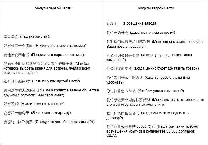Abstract Key words: chinese in the profession, teaching Chinese, business Chinese, principles of professionally oriented language teaching, higher education, language pedagogy, professional Chinese, Chinese in higher education institutions. ---------------- В современную эпоху отношения между Россией и Китаем стремительно развиваются. В связи с этим растет потребность в российских специалистах, владеющих профессиональными знаниями китайского языка и способных успешно взаимодействовать с китайской стороной в различных сферах профессиональной деятельности. Эти специалисты могут занимать позиции менеджеров по внешнеэкономической деятельности, переводчиков, юристов, экономистов, консультантов по рекламе и связям с общественностью. Для обеспечения дальнейшего развития и углубления двусторонних отношений необходимо внедрение преподавания китайского языка для профессиональной деятельности в учебные планы различных специальностей российских вузов. Новизна работы заключается в исследовании принципов профессионально-ориентированного обучения китайскому языку на основе материалов первой и второй частей учебного пособия «New Silk Road Business Chinese» (для среднего уровня владения китайским языком) и формированию практических рекомендаций по их эффективному применению. В качестве методов исследования были выбраны следующие подходы: анализ теоретических и научно-методических источников, контент-анализ учебного пособия, синтез, обобщение, методический анализ. Эмпирическим материалом выступают теоретические и методические исследования российских и китайских учёных, а также учебное пособие «New Silk Road Business Chinese», предназначенное для студентов, изучающих китайский язык как иностранный. Теоретические источники посвящены как общим вопросам преподавания китайского языка, так и профессионально-ориентированному аспекту преподавания китайского языка. Преподавание профессионально-ориентированного китайского языка должно осуществляться уже после того, как студенты приобретут определённую базу общего китайского языка. Это подразумевает умение читать и писать простые тексты, знание нескольких сотен иероглифов и наличие определённых навыков в аудировании и говорении. Только после этого возможно изучение китайского языка в контексте будущей профессиональной деятельности [1, 84]. Важной составляющей делового обучения китайскому языку является акцент на всех четырёх видах коммуникативной деятельности: чтении, аудировании, говорении и письме. Многие общие программы по изучению китайского языка как иностранного игнорируют необходимость изучения письма или же уделяют этому разделу недостаточно внимания. Это является ошибкой в большинстве случаев, однако, если китайский язык изучается в профессиональных целях, то это является в особенности серьёзной ошибкой, ведь деловая переписка представляет собой важный элемент профессиональной коммуникации [2, 191]. При обучении профессиональному китайскому языку российских студентов важно учитывать соблюдение целого комплекса принципов, а именно: коммуникативного принципа, принципа тесной связи содержания обучения с профессиональной специализацией студентов, принципа модульного подхода, принципа использования информационно-коммуникативных технологий, принципа совмещённого изучения языка и культуры, принципа практической направленности и принципа комплексного обучения различным разделам 