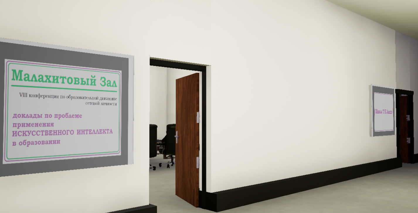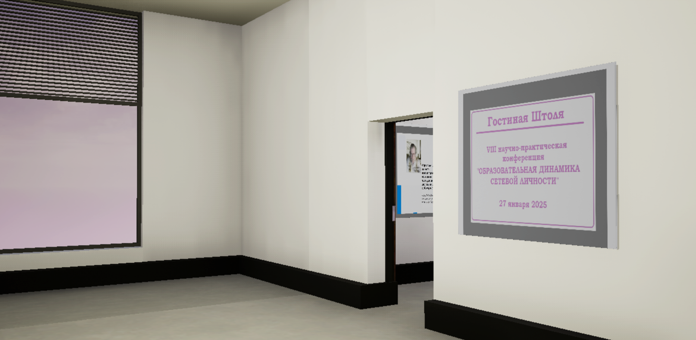 Yulia V. Molodtseva ----- VIII всероссийская научно-практическая конференция «Образовательная динамика сетевой личности» состоялась 27 января 2025 года в удаленном формате. Конференция проходила в нескольких залах виртуальной педагогической студии "Гостиная Штоля" Герценовского Университета. На участие в конференции зарегистрировались 70 человек из 14-ти городов Страны. Формат проведения конференции позволил участникам активно взаимодействовать и обмениваться мнениями в ходе выступений. Презентации докладов были заблаговренно представлены на постерах в виртуальных студиях, что дало возможность участникам конференции, установившим в свои компьютеры приложение "Stoll Hall", заранее познакомиться с содержанием докладов. Со вступительным словом к участникам конференции обратился проф. Андрей А. Ахаян. Участники перемещались от одной студии к другой, погружаясь в атмосферу живой дискуссии и обмена мнениями, что создало эффект "интерактивного путешествия" по актуальным проблемам и достижениям в области образования. Формат проведения способствовал не только получению новых знаний, но и налаживанию взаимодействия между участниками слушаний. Конференция проходила в двух частях с небольшим перерывом. Первая часть конференции проводилась в Центральной студии и была посвящена проблемам создания и использования образовательной среды виртуального трехмерного пространства. Проф. Андрей А. Ахаян предложил к рассмотрению мнение о важных с его точки зрения принципах организации виртуального образовательного пространства сетевой личности: Незамедлительность, Образность и Субъектность. Докладчик пояснил, что принцип незамедлительности определяется отличительной особенностью сетевой личности - ценностным отношением к возможности немедленного удовлетворения потребности в установлении контакта или в получении ответа на возникающий вопрос. Реализация этого принципа означает такую организацию пространства, которая обеспечивает незамедлительное вхождение в него при соответствующем запросе. Принцип образности отражает необходимость восстановления самого образа общего пространства взаимодействия (которое является естественным для очной формы обучения, и которое было потеряно при переходе к дистанционной форме работы с традиционными средствами интернет-коммуникации), иными словами - необходимость восстановления образа общего - если не реального, то виртуального, но человекоразмерного, узнаваемого, иммерсивного пространства. Принцип субъектности обозначает необходимость обеспечения возможности деятельностного поведения человека в этом новом пространстве - не простого созерцания телевизионной картинки, а реальной вовлеченности в действие - возможности деятельного участия в событиях, разворачивающихся внутри этого пространства. Реализация виртуального образовательного пространства на основе этих принципов позволяет создать привлекательную среду, которая удерживает внимание и где участники, находящиеся в реальном пространстве на удалении друг от друга, могут реализовать свой потенциал, действуя в общем для всех них виртуальном человекоразмерном пространстве. Совокупность трех перечисленных ортогональных (независимых друг от друга) принципов докладчик обозначил аббревиатурой НОС и символизировал на последнем слайд