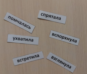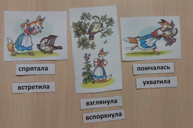 Рис 3. Подбор глаголов к рисунку. Далее учитель раздает отдельные предложения на карточках и предлагает детям расставить их под подходящими картинками (рис. 4).