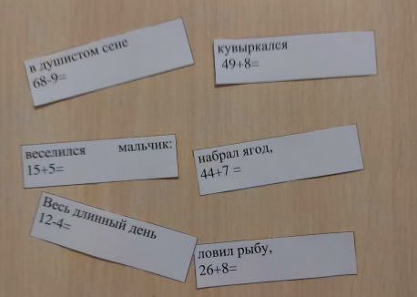 Рис. 6. Карточки с фразами и математическими примерами.