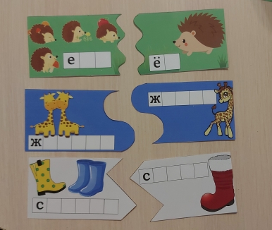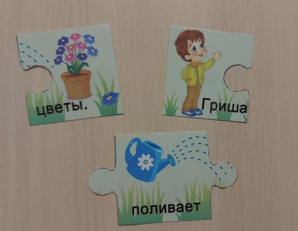 Рис. 8. Пазлы с отдельными словами предложения, которые соединяются единственно возможным способом. С помощью пазла можно изучать и пары звонких/глухих согласных, где у каждой пары есть свой способ соединения и что детали из разных пар соединить нельзя (рис. 9).