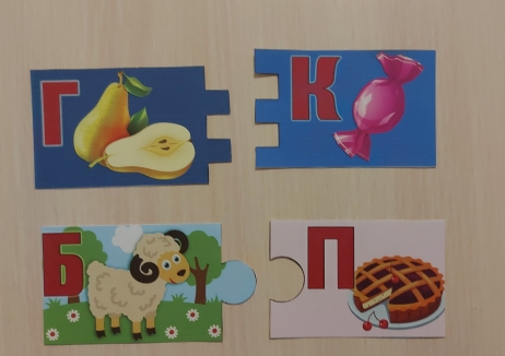Рис. 9. Пазлы, используемые при изучении пар глухих и звонких согласных. Для наблюдения за звонкими и глухими согласными в конце слова также можно употреблять пазлы (рис. 10). Пазлы или пары карточек, можно использовать и для закрепления знания единственное/множественное число.
