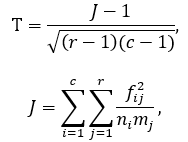 Далее коэффициент сопряженности рассчитывался по формуле: