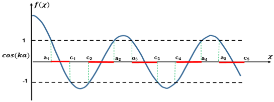 Рис.1. Графическое решение обобщенного уравнения (1) В точках [a1 c1], [c2 a2], [a3 c3], [c4 a4] представленное уравнение имеет решение, график при этом похож на “разорванную” параболу и показывает связь энергии частицы (E) с её импульсом (p) или волновым числом (k). Проведя анализ данной модели Кронига-Пенни обучающиеся осваивают фундаментальную основу возникновения разрешенных и запрещенных энергетических зон в кристаллах. Решение данной модели может быть обобщено и на трехмерный случай. Здесь обучающиеся узнают, что внутри разрешенных зон энергия электрона E(k) – непрерывная функция, а сами зоны могут частично перекрываться. Важными физическими моделями, на которые следует обратить глубокое внимание обучающихся при освоении функциональных свойств кристаллов (металлов, полупроводников) являются модели вырожденного и невырожденного электронного газа. Вырожденный электронный газ описывается квантовой функцией распределения Ферми-Дирака
