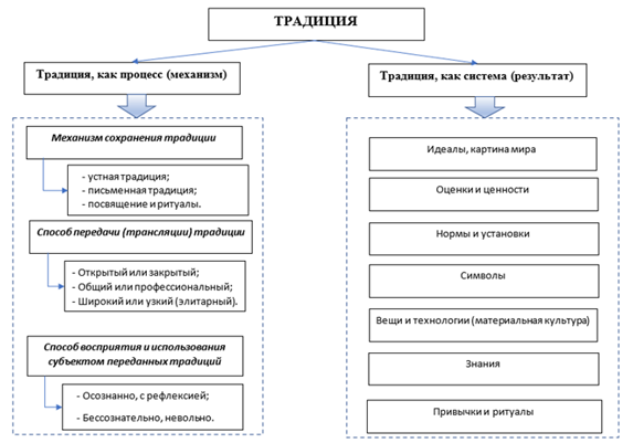Рис. 1. Структура традиции воспитания Советская традиция воспитания дала отечественному образованию значительное число эффективных педагогических практик, прошедших проверку временем. Особое место среди них занимает воспитание на основе памяти о ВОВ, обеспечивающее передачу патриотических идеалов между поколениями. Советский опыт формирования исторической памяти о войне не исчез в постсоветский период, но подвергся существенной трансформации. Сохраняя преемственность с прежними формами, современные практики адаптируются к новым социокультурным условиям, цифровой среде и изменившейся системе ценностей. Сравнительный анализ (Таблица 1) показывает, что основные направления сохранения исторической памяти (институциональные, мемориальные, педагогические, идеологические и коммуникативные) сохраняют преемственность с советским опытом, но приобретают новые формы. Таблица 1 Сравнительный анализ советских и современных практик сохранения исторической памяти о Великой Отечественной войне
