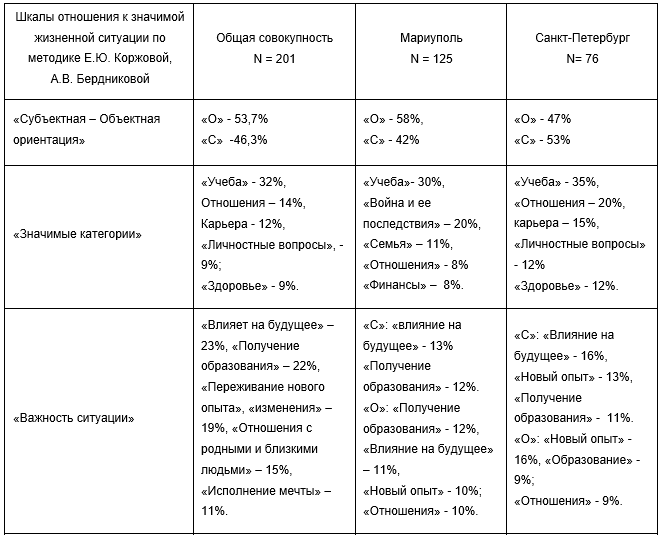Результаты контент-анализа отношения к значимой жизненной ситуации в