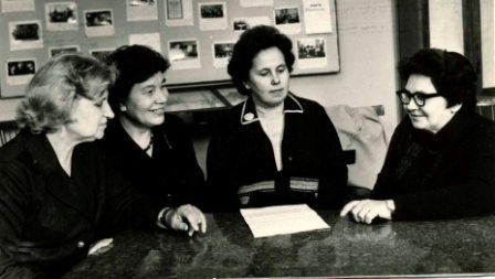 Галина Ивановна Щукина. в окружении сотрудников. Шестидесятые годы.